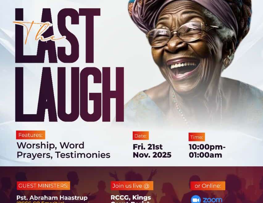 The Last Laugh — Join us for a powerful night of worship, word, prayers, and testimonies at our Special Quarterly Kingdom Night. Experience God’s presence from 10 PM – 1 AM, Friday, November 21.
